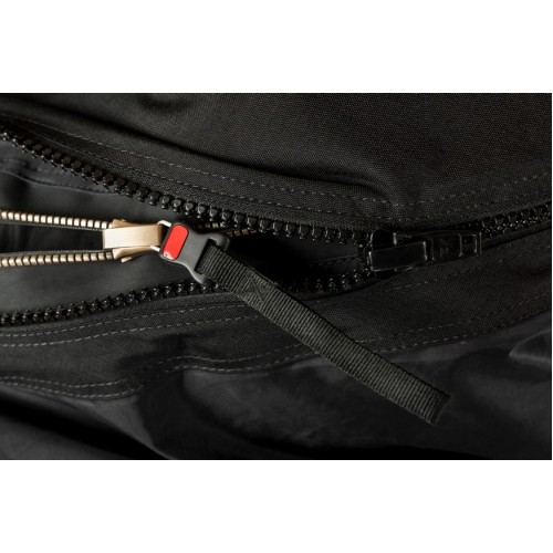 Zippers are running next to each other to prevent abrasion.